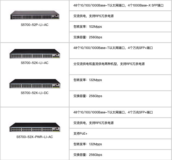 S5700-10P-LI-AC/S570÷₽∏0-10P-PWR-LI-AC:8×10/100♣≠/1000Base-T,2×1000Base-X SFP S5700-28P-LI-AC/S5700-28P- α&εPWR-LI-AC:24×10/100/1000Base-T,4δ₽✘×1000Base-X SFP S5700-28TP-LI-AC/S5700-28TP-PWR-LI-₽×× AC/S5701-28TP-PWR-LI-<✘AC:24×10/100/100&↕0Base-T, 4×1000Base-X SF±β∏P,2個(gè)複用(yòng)的(de)10/100♥ /1000Base-T Combo S5700-28X-LI/S5700-2×≠&8X-PWR-LI-AC:24×10/100★ /1000Base-T,4×10GE SFP+ S5700-28X-LI-24S:24×100/™©♦✘1000BASE-X,4個(gè)複用(yòng)的(de±Ω♠α)10/100/1000Base-T Combo,4Ω♠€×10GE SFP+ S5700-52P-LI-AC/S5700-52Pβ♥•-PWR-LI-AC:48×10/100/1000B↓→∞ase-T,4×1000Ba©₩πse-X SFP S5700-52X-LI /S5700-52X-PWR-LI-AC:48&t€imes;10/100/1000Base-T,4×10G☆ ∞₩E SFP+ |