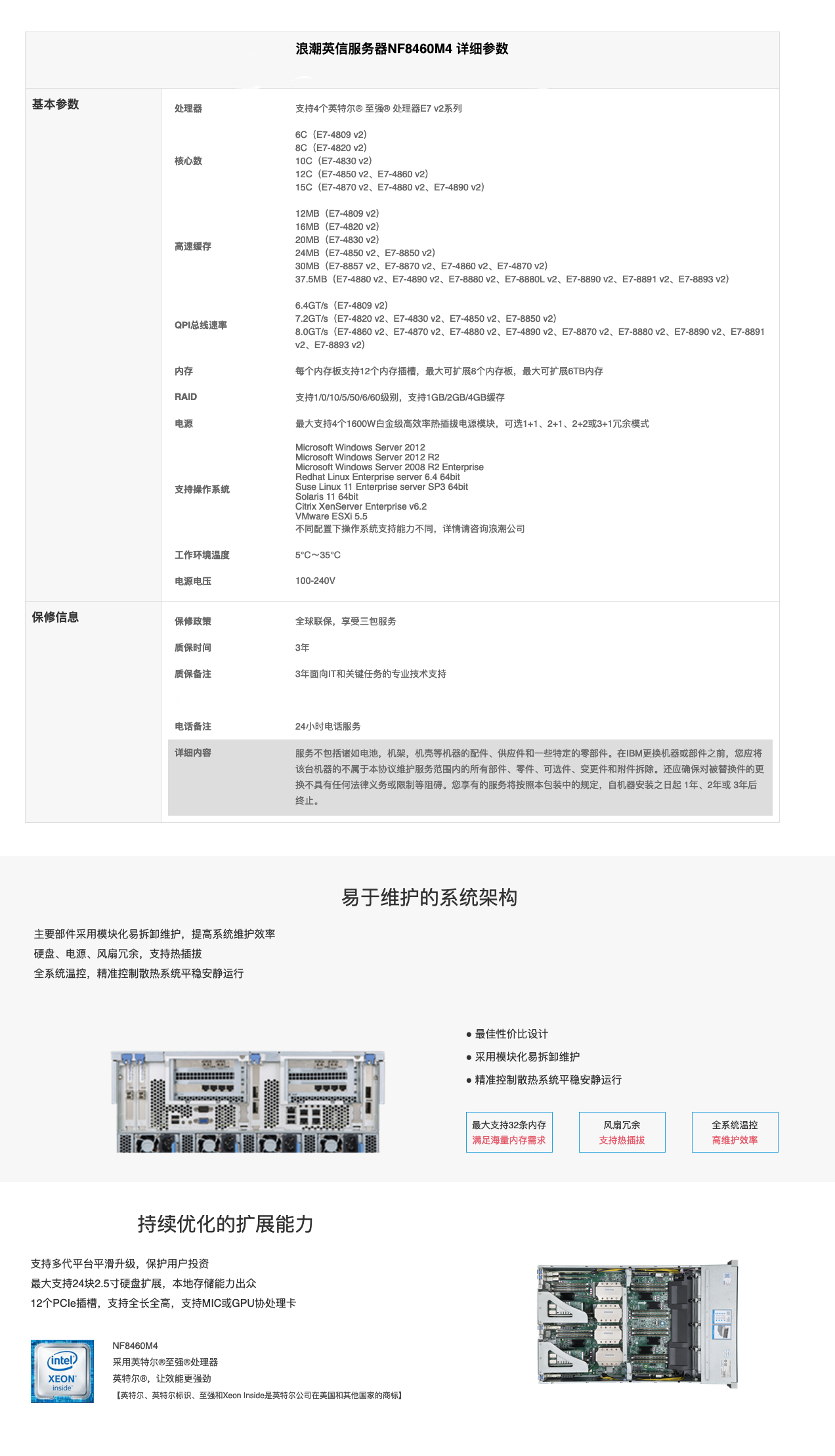 浪潮英信NF8460M4是(shì)-款采用(yòng)英特爾至¶₹強?處理(lǐ)器(qì)E7- -8800/4800 v3/v4産品€↓&家(jiā)