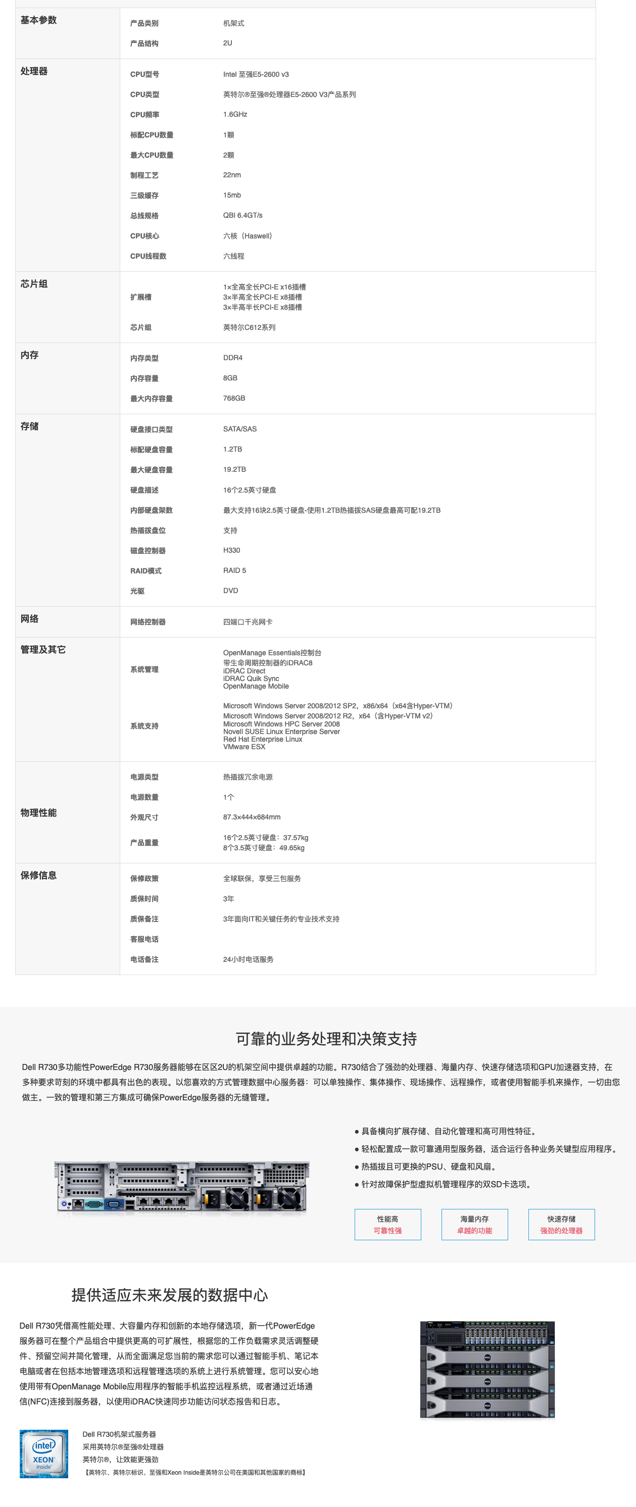 戴爾Dell PowerEdge R730機(jī)架式服↑₩務器(qì)